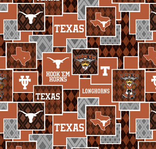 NCAA-Texas Argyle Boxes Cotton by the yard