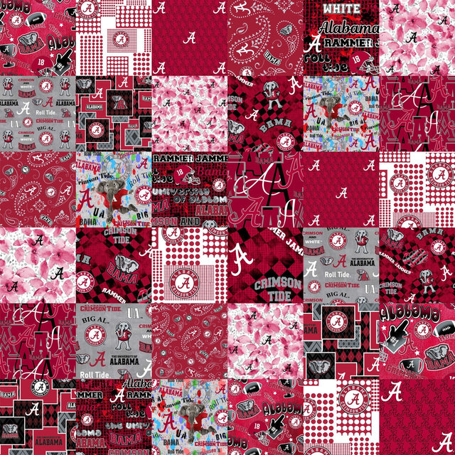 Official Licensed University of Alabama Cheater Quilt Printed Cotton Fabric-Alabama Crimson Tide Cotton Fabric with Patchwork Cheater Quilt Print-60” Width