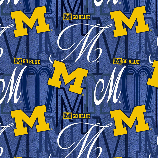 Official Licensed University of Michigan Cotton Quilting Fabric-Michigan Wolverines Letters Cotton Fabric Sold by the Yard