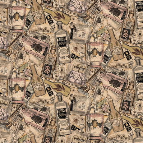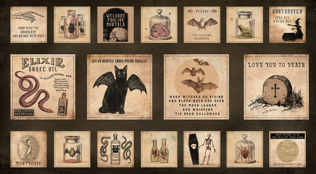 Khaki Gothic Halloween Digital Bats & Cats by the yard