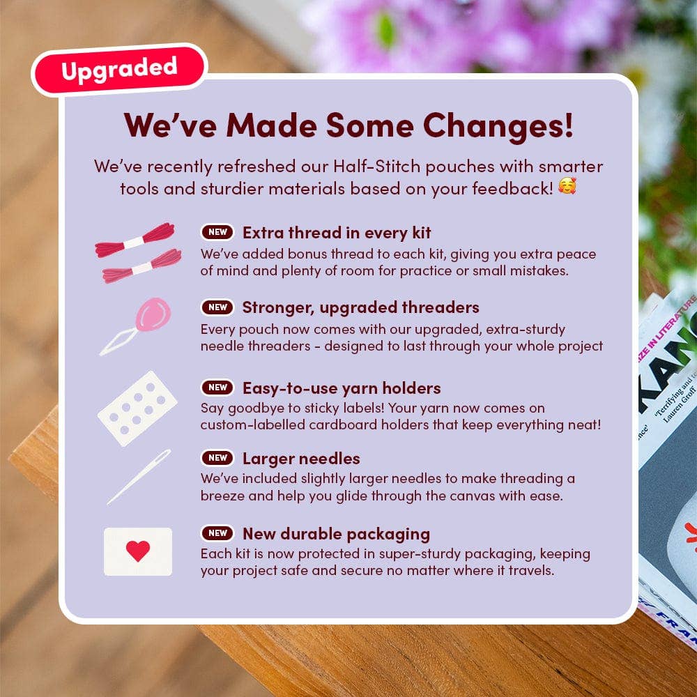 A lucky little pouch filled with charm šāØš Good Luck Charms features a sweet and dreamy grid of lucky symbols, giving you a sprinkle of luck and loveliness wherever you go. This playful, pastel pouch is a nod to nostalgia, perfect for storing your most precious little trinkets. Even better? Itās super beginner-friendly, thanks to our easy-to-learn half-stitch technique and video tutorials. Also, no need to finish or sew ā the pouch is ready-made for you, so you can get to the fun part straight away. Craft your pouch while manifesting some good fortune, and finish with a handmade piece that's as practical as it is positive. ⨠Perfect for gifting or treating yourself to a little magic.Ā