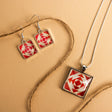 Silver 16mm Earrings for pierced ears. Original Design features shades of Red behind beveled crystal. Presented on Eco-friendly earring card. Also available in matching 25mm pendant with 18" silver chain. Pendant and Earrings are sold separately.