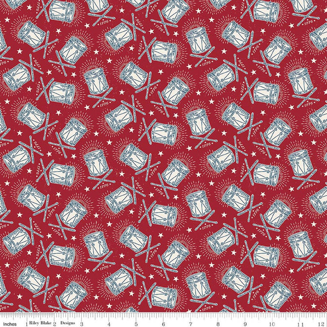 Independence Drums Cherry Tart from Riley Blake by the yard