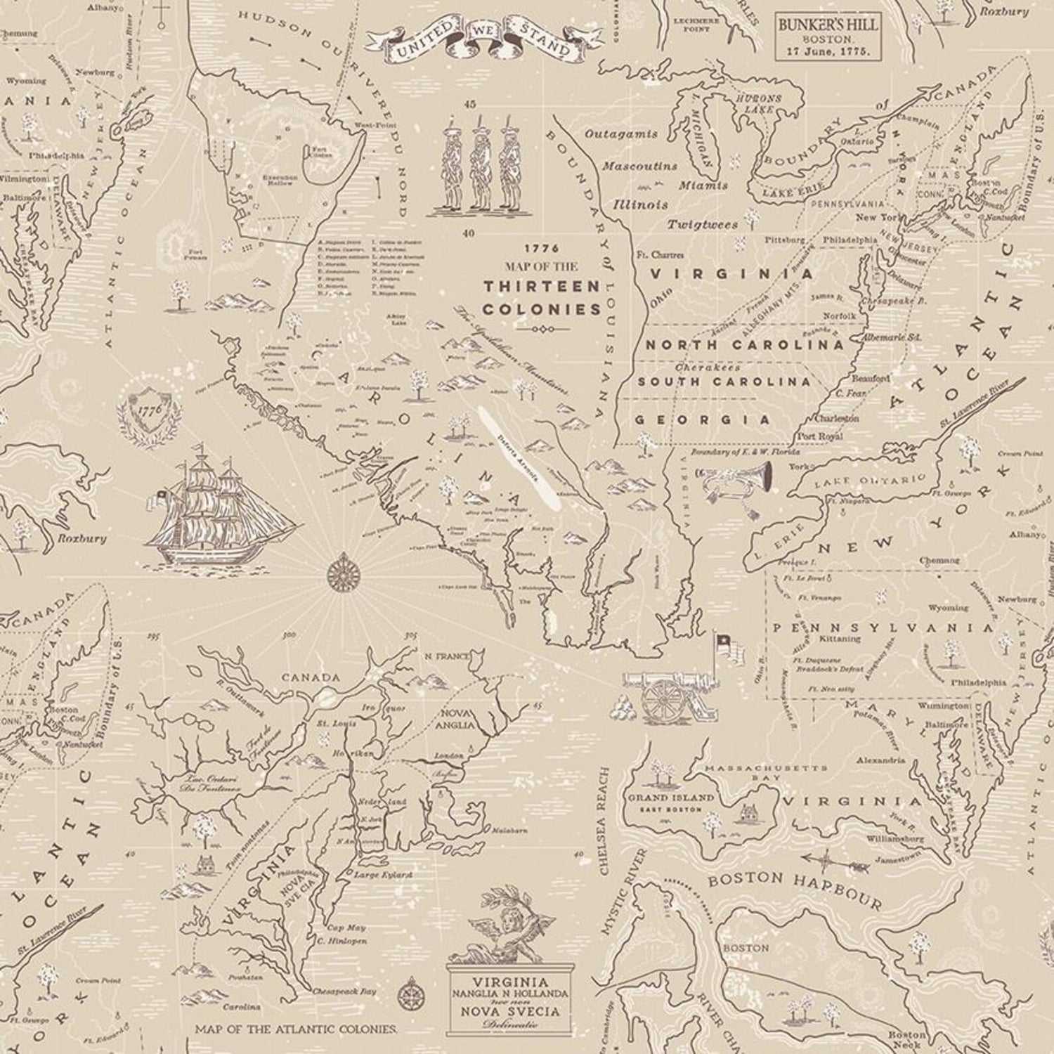 Independence Colonial Map Beige from Riley Blake by the yard is backordered and will ship as soon as it is back in stock.