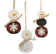 Lend any home rustic charm with our Buffalo Check Snowman Ornament. These simple snowman ornaments come in three assorted designs and are made of painted wood with buffalo check and snowflake accents. They are ready for display on a wall or tree due to their jute rope hangers and feature jute rope bows around their necks for detail. Pair them with galvanized metal or ceramic elements for a country Christmas look. interchangeable.