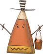 A wooden sitter from our Halloween Collection displaying a charming candy corn character dressed for trick or treating that is recreated from an original hand carved and painted piece. Halloween sitter features twisted wire and painted accents with distressed details to create a handmade feel. Candy corn man design also features a metal treat pail holding a wooden candy corn. Our Candy Corn Man sitter is designed to free-stand alone on flat surface for easy display. A rustic Halloween home accent that easily adds seasonal style to any home or work space.
