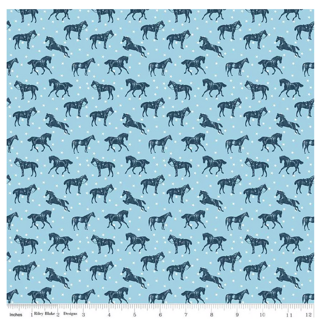 Bluegrass Charm by Melissa Mortenson for Riley Blake Designs is great for quilting, apparel and home decor. This print features horses on a background of scattered stars.