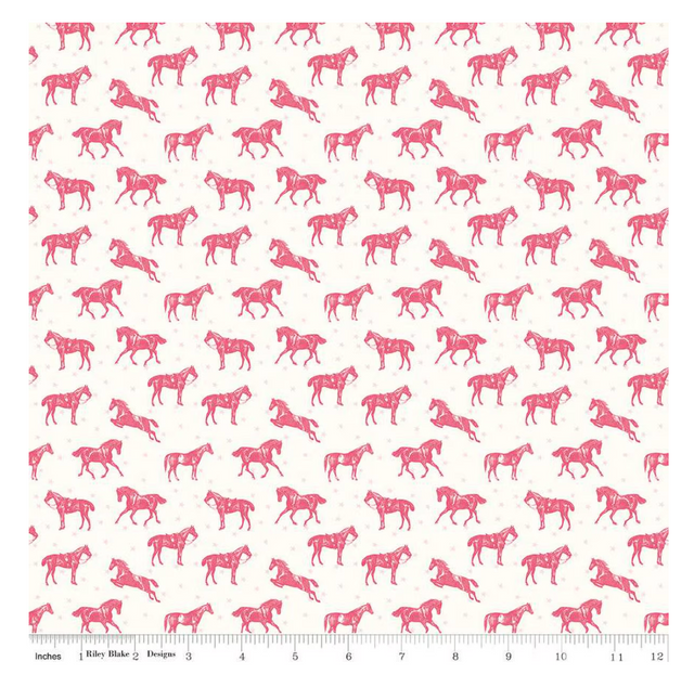 Bluegrass Charm by Melissa Mortenson for Riley Blake Designs is great for quilting, apparel and home decor. This print features horses on a background of scattered stars.