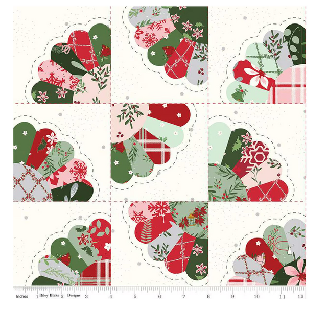 Mistletoe & Holly by Beverly McCullough for Riley Blake Designs is great for quilting, apparel and home decor. This print features a Dresden fan quilt design.