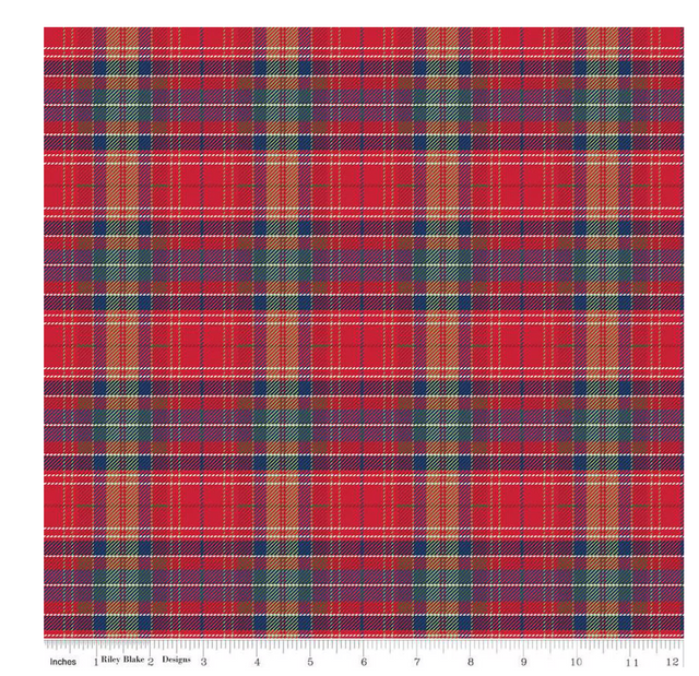More Christmas Wishes Wishes Lumberjack Red by the yard from Riley Blake