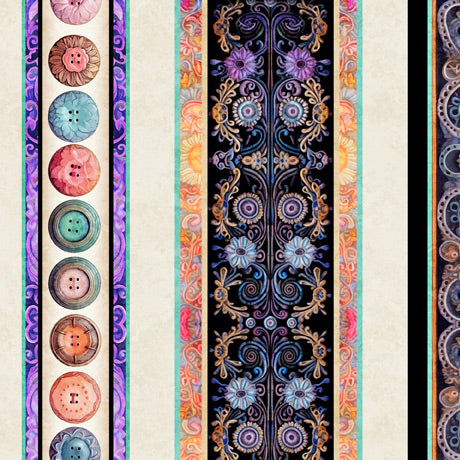 All things sewing are the star of this collection celebrating our favorite activity, sewing and quilting! Antiqued styled sewing machines, surrounded by gorgeous flowery details, thimbles, scissors, thread, and more will bring bold color and print to home accessories and more. ©Morris Creative Group