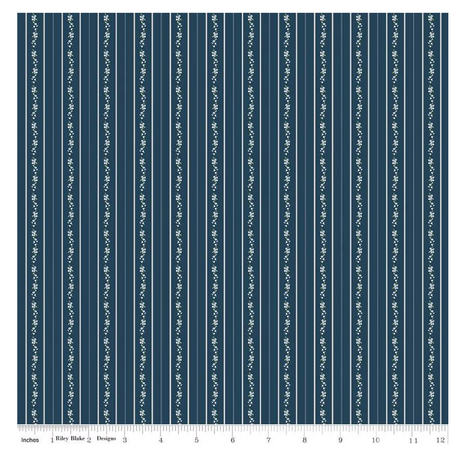 Bluegrass Charm Floral Stripe Navy from Riley Blake by the yard