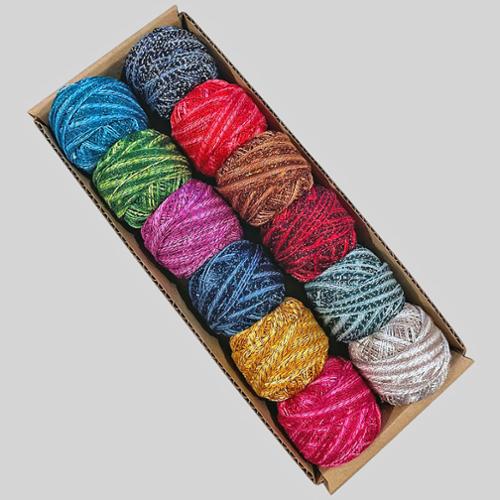 12 piece collection. Sparkle six 12 pearle cotton, hand dyed and colorfast. For patterns where you want a finer thread for more definition in Sewing, Embroidery, Wool Applique, Sashiko, Hand Quilting, Crochet, Punch-needle or heavier Tatting. Can be used in the Sewing Machine when paired with a 50wt cotton thread in the bobbin, for Hand Sewing use a size 22 Chenille needle.
