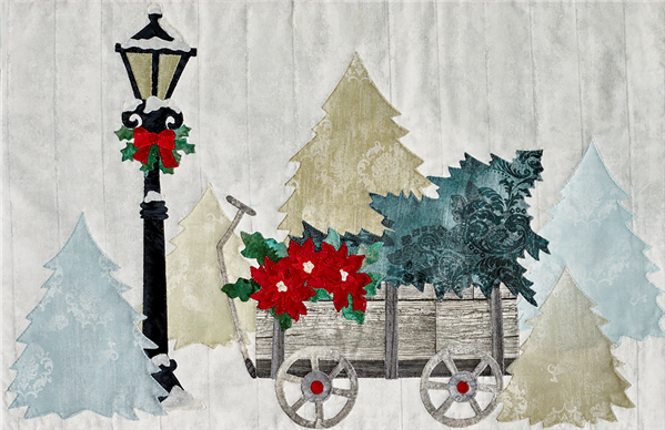This is the laser cut fabric kit for Wagon, of Joyeux Noel. Kit includes the pattern, background fabric and pre-cut and pre-fused appliques.