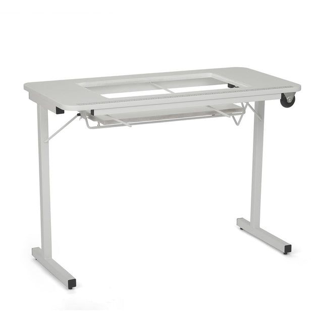 The gold standard of sewing tables! Our best-selling Gidget II Sewing Table is a reliable, heavy-duty sewing table designed for quick set-up and easy storage! Gidget II features a 2-position manual sewing lift, steel locking legs, a built-in measuring decal and 2 durable wheels for easy transportation! Perfect for community sewing guilds, RVs or a 2nd sewing station!