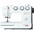 - For sewing particularly thick fabrics or multiple layers, the presser foot can be raised extra high for easy positioning of work.