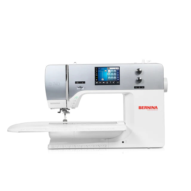 The BERNINA 740 combines innovative functions and features with an extra-large work area and intuitive touchscreen control. The extended freearm offers 254 mm of space to the right of the needle, and the fast and quiet BERNINA Hook sews high-precision stitches up to 9 mm in width.
