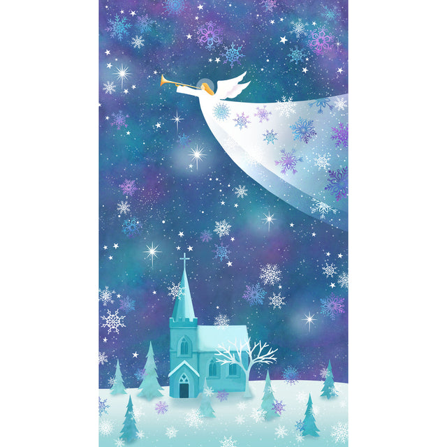 Indulge in the ethereal beauty of the Angels on High fabric collection, brought to you by Northcott Fabrics, available at Shabby Fabrics. This captivating collection captures the essence of a serene winter evening, where angels and churches come alive in a gentle snowfall.