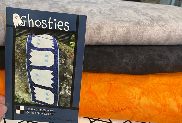 Everything you need to complete the top for this not so spooky, Ghosties table runner. Finishes at 16” x 57”.