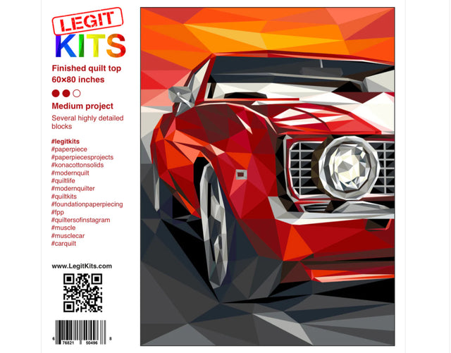Muscle, a rolling work of high powered art is ready for your studio. Strap into a luxurious quilt top pattern which contains color maps, fabric lists, an assembly guide and the full pattern printed on foundation paper to complete this full sized, 60 inch wide by 80 inch tall quilt top.