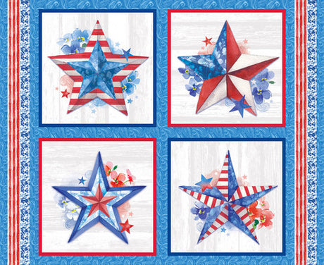 3912P-75 Med. Blue || Lucky Stars, block panel 36", for blank quilting by the panel