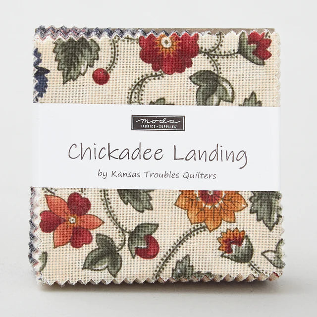 Mini charm pack of small prints in black, blue, olive, maroon, rust, and cream. Give your quilt homespun appeal with the pastoral prints in Chickadee Landing. This collection by Kansas Troubles Quilters for Moda Fabric features calico, ditsy flowers, and petite dots and swirls. The simple prints in dark shades are beautifully balanced by tonal cream designs.