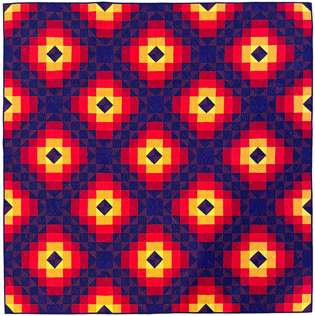 This traditionally pieced quilt is inspired by the colors in a glorious sunset, but works in just about any color scheme you can come up with! The pattern uses strip piecing and 8-at-a-time half square triangles to help speed up the process, and is suitable for a confident beginner. You will receive: • Complete cutting and piecing instructions for four quilt sizes Finished sizes: • Crib: 48" x 48" • Lap: 72" x 72" • Twin: 72" x 96" • Queen: 96" x 96" This is a printed paper copy of the directions.