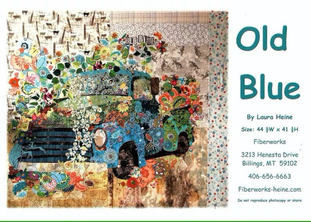 Old Blue collage printed pattern by Laura Heine. This pattern includes the full sized pattern and step by step photos of the technique. The finished size is 44.5W x 41.5H