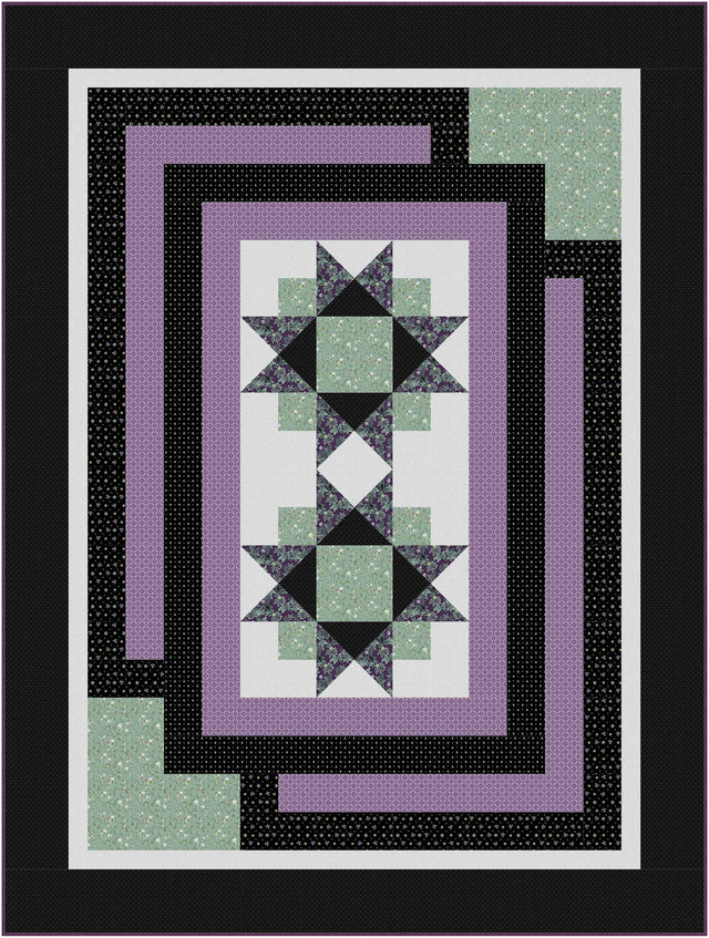 These rich colors evoke the feeling of a dark night in a theater watching an opera. What's happening now? Ah, it's just a trick done with smoke and mirrors. Finishes about 55" x 73". A kit will be available at Connecting Threads. BONUS: A section on how to make a hanging sleeve.
