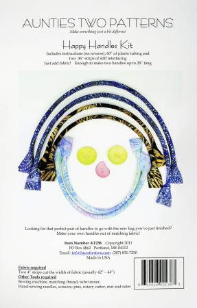 Looking for that perfect pair of handles to go with the new bag you just finished? Make your own handles out of matching fabric. Kit includes: 60in of plastic tubing & two 36in strips of stiff interfacing plus instructions. Just add fabric. Enough to make two handles up to 28in long.