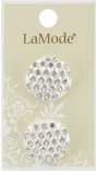 These La Mode Silver Shank Buttons with Clear Rhinestones are perfect for everyday sewing, crafting or fashion projects. The 22 mm shank buttons come in a pack of two.