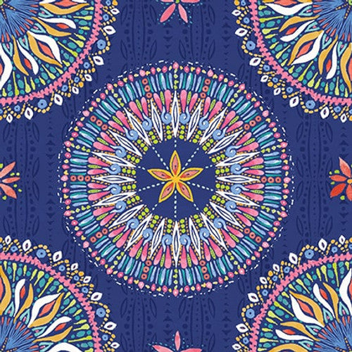 Along the Coast, from Blank Quilting, Dark Blue Mandala Allover Fish by the yard is backordered and will ship as soon as it is back in stock.