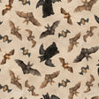 This fabric features a whimsical and slightly eerie design with various bats and cats in flight, set against a subtle khaki background. The bats and cats are depicted in shades of brown and black, creating a gothic Halloween theme that is both charming and festive. Perfect for crafting seasonal decorations, costumes, or themed textiles, this fabric brings a touch of spooky fun to any project.
