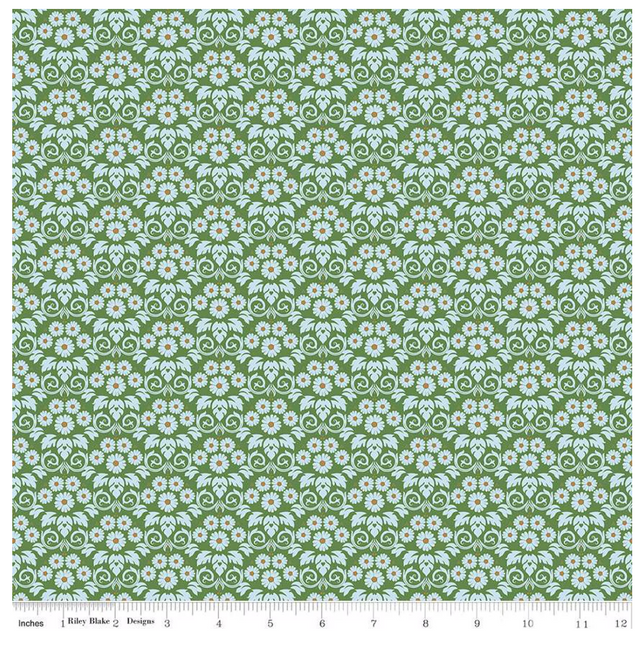 Bluegrass Charm Damask Green from Riley Blake by the yard