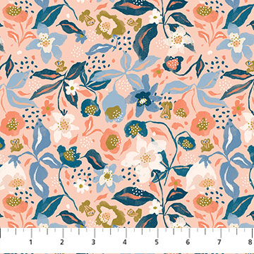 Alpine Bliss by Figo- Floral toss, coral by the yard is backordered and will ship as soon as it is back in stock.