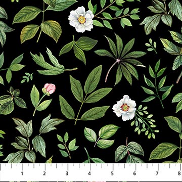 Blush By Northcott- Black floral Wide backing by the yard is backordered and will ship as soon as it is back in stock.