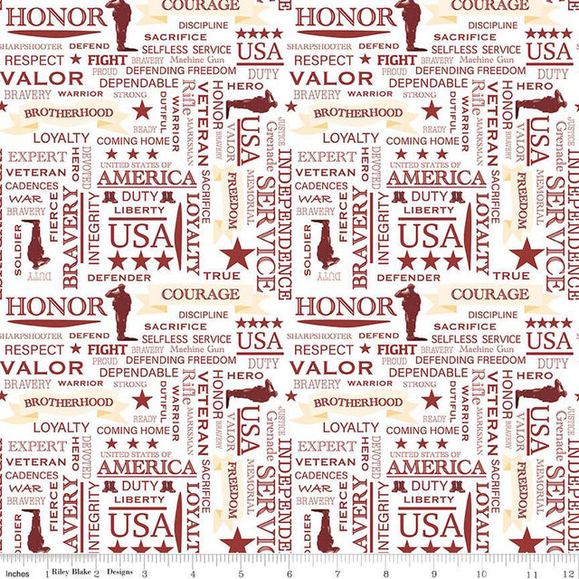 Riley Blake Coming Home Marines Text White, by the yard is backordered and will ship as soon as it is back in stock.