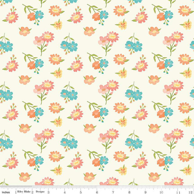 Riley Blake, Spring's in Town floral cream by the yard is backordered and will ship as soon as it is back in stock.