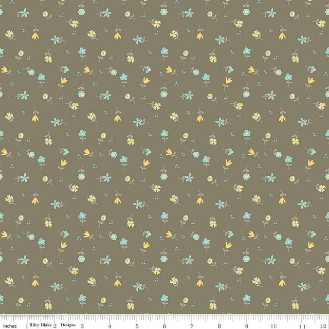 Riley Blake, Spring's in Town flower toss pewter by the yard