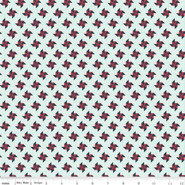 Riley Blake, Sweet Freedom Pinwheels Bleached Denim by the yard