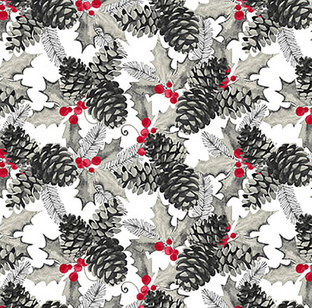 Holiday Style Gray Pinecones 3391 90 by Blank by the yard