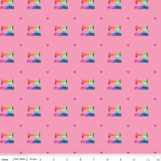 Make by Kristy Lea of Quiet Play for Riley Blake Designs is great for quilting, apparel and home decor. This print features rows of hearts and rainbow-colored sewing machines.