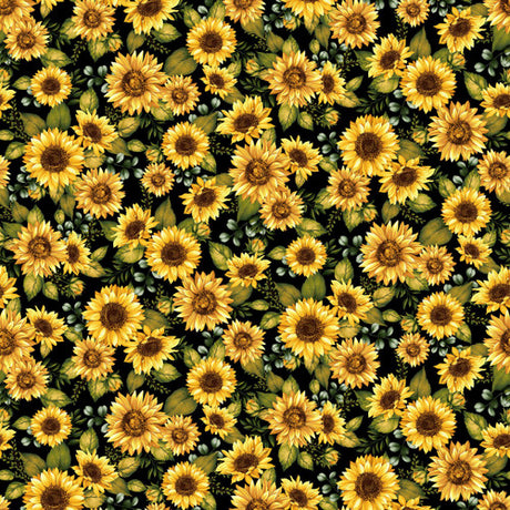 7694-99 Black || Seeds of Gratitude Large Sunflower, by the yard