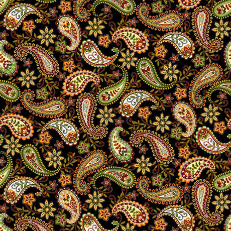 7695-99 Black Multi || Seeds of Gratitude Large Paisley, by the yard