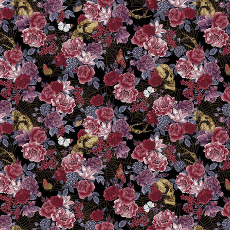 Bones Collection from Studio E, Black Skulls & Flowers by the yard
