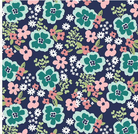 WILMINGTON PRINTS FABRICS JULIETTE ANGELA NICKEAS FLORAL Large Floral Navy/Teal