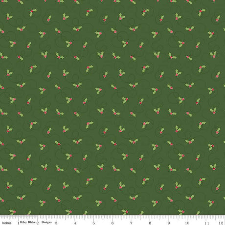 More Christmas Wishes Holly Green by the yard from Riley Blake