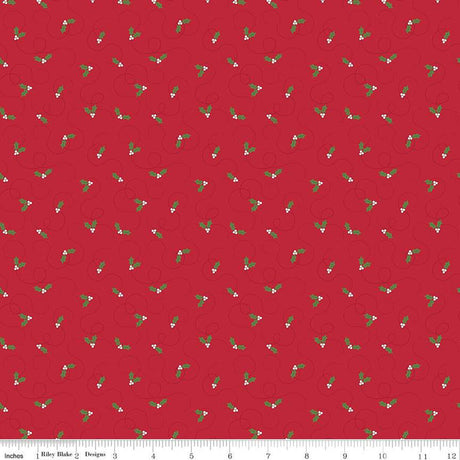 More Christmas Wishes Holly Red by the yard from Riley Blake