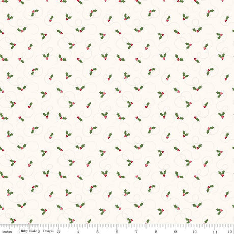 More Christmas Wishes Holly White by the yard from Riley Blake