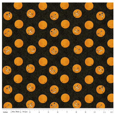 Costume Maker's Act II Jack-O-Lantern Balloons Black Riley Blake, by the yard
